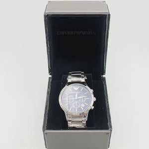 Elevate your style with the Emporio Armani AR2448 Chronograph Men's Watch, a sleek stainless steel timepiece with a striking blue dial and precise quartz movement - perfect for any occasion.