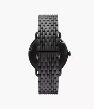 Discover the bold sophistication of the Emporio Armani AR60025 Men’s Aviator Meccanico — crafted with a 43 mm black-plated stainless steel case, a striking black skeleton dial with rose gold-tone indices, and a black stainless steel bracelet that exudes modern masculine elegance. Powered by automatic movement, and finished with a transparent exhibition case-back and 50 m water resistance, this timepiece blends technical refinement and Italian design flair for the discerning man.