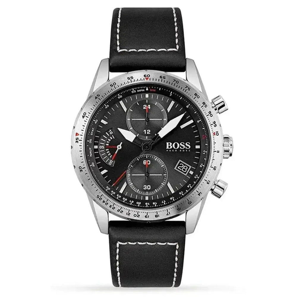 Hugo Boss 1513853 Pilot Edition Black Dial Black Leather Strap Watch for Men