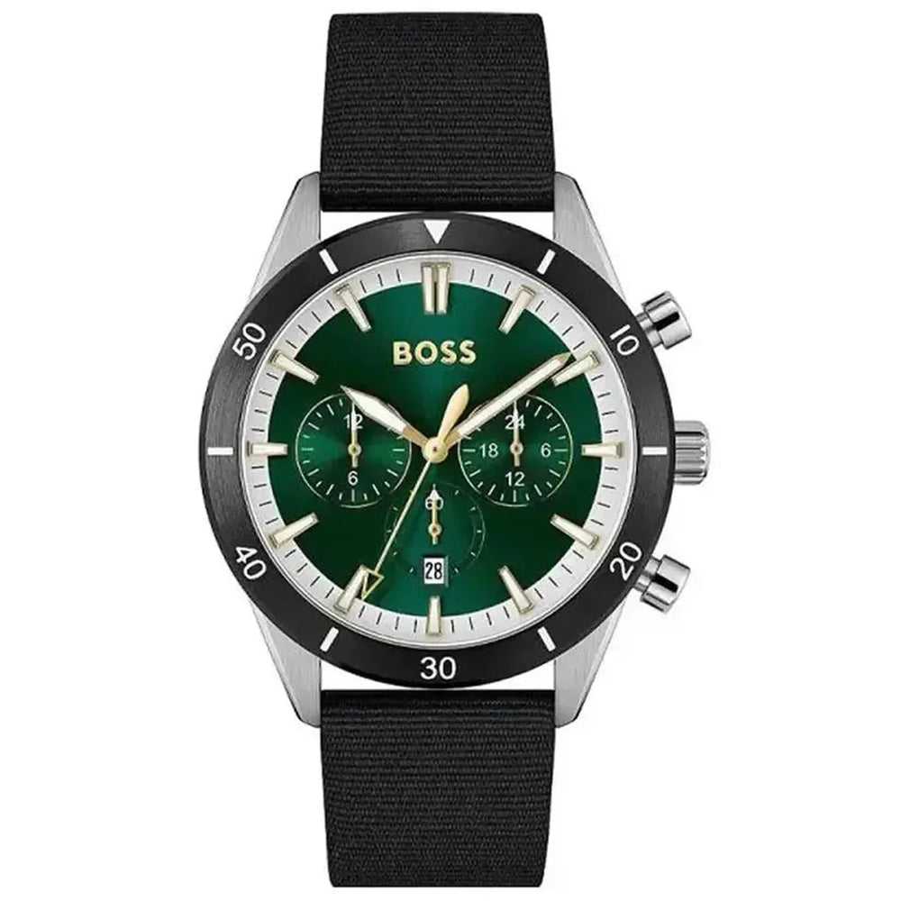 Hugo Boss 1513936 Santiago Green Dial Black Nylon Strap Watch for Men