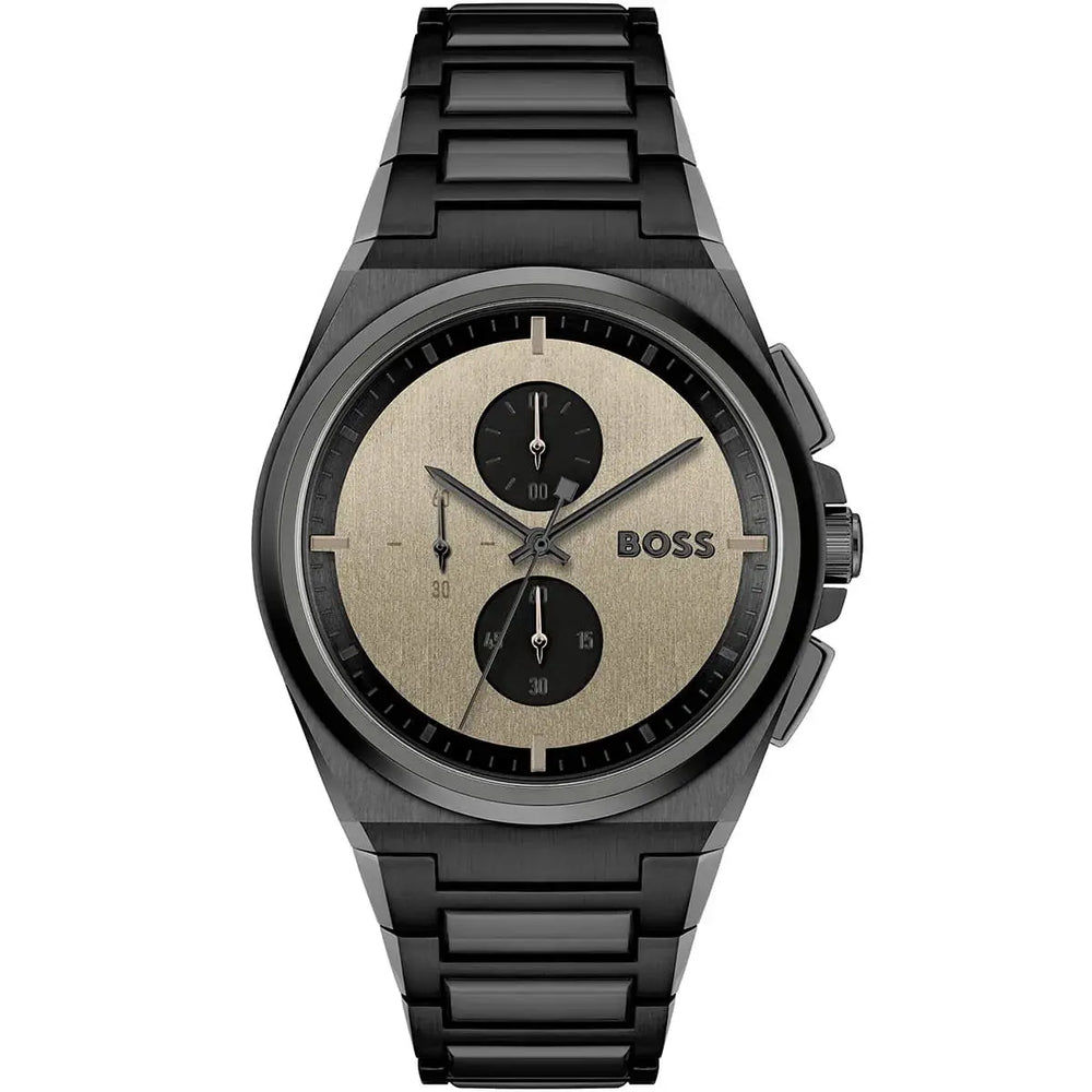 Shop the Hugo Boss Steer HB1514043 – a refined chronograph featuring a 44 mm anthracite stainless steel case, brown dial, black bracelet, and 50 m water resistance.