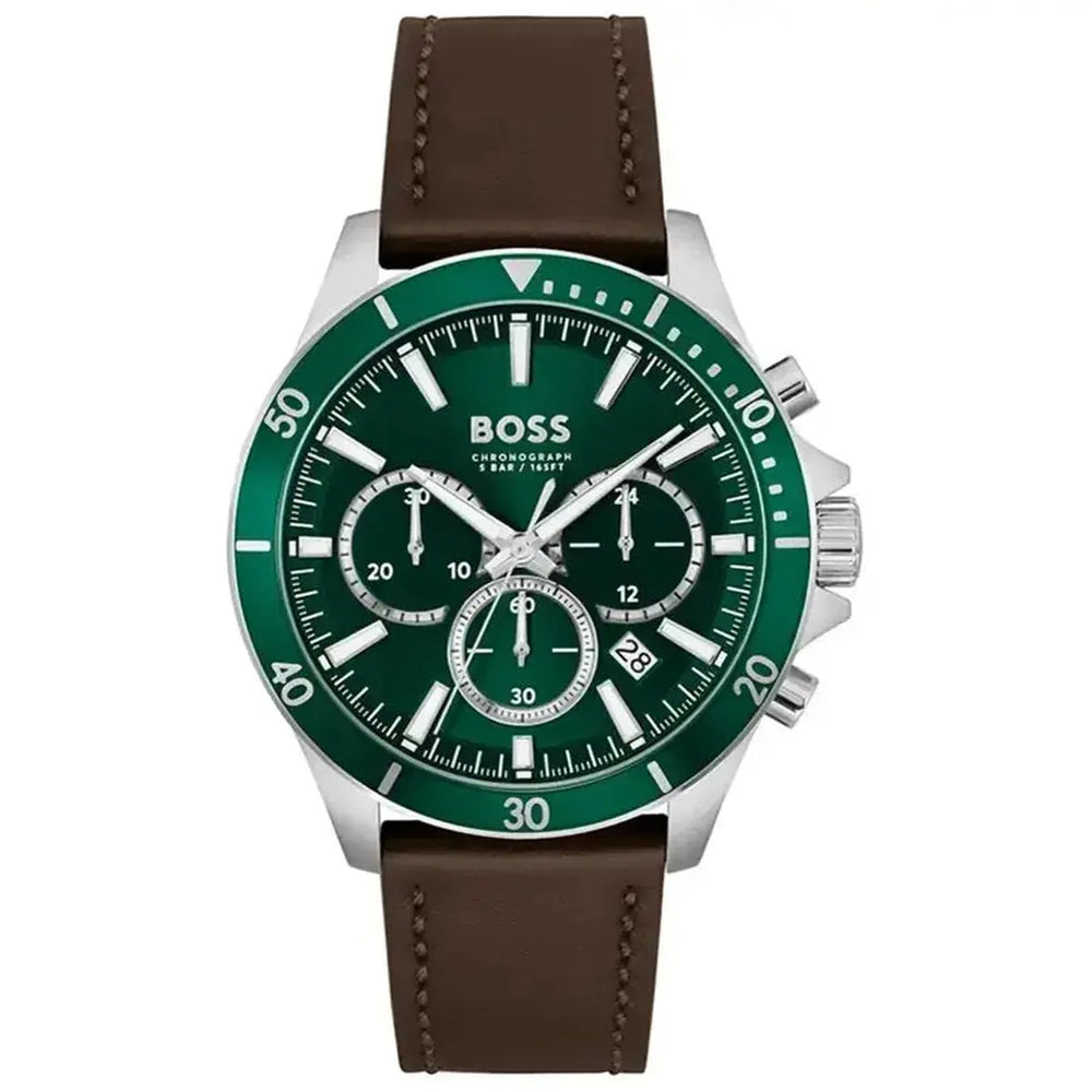 Hugo Boss 1514098 Troper Chronograph Green Dial Brown Leather Strap Watch For Men
