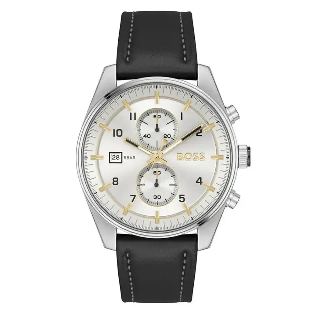 Powered by a quartz chronograph movement and equipped with a date display, it blends everyday reliability with a confident, modern style.