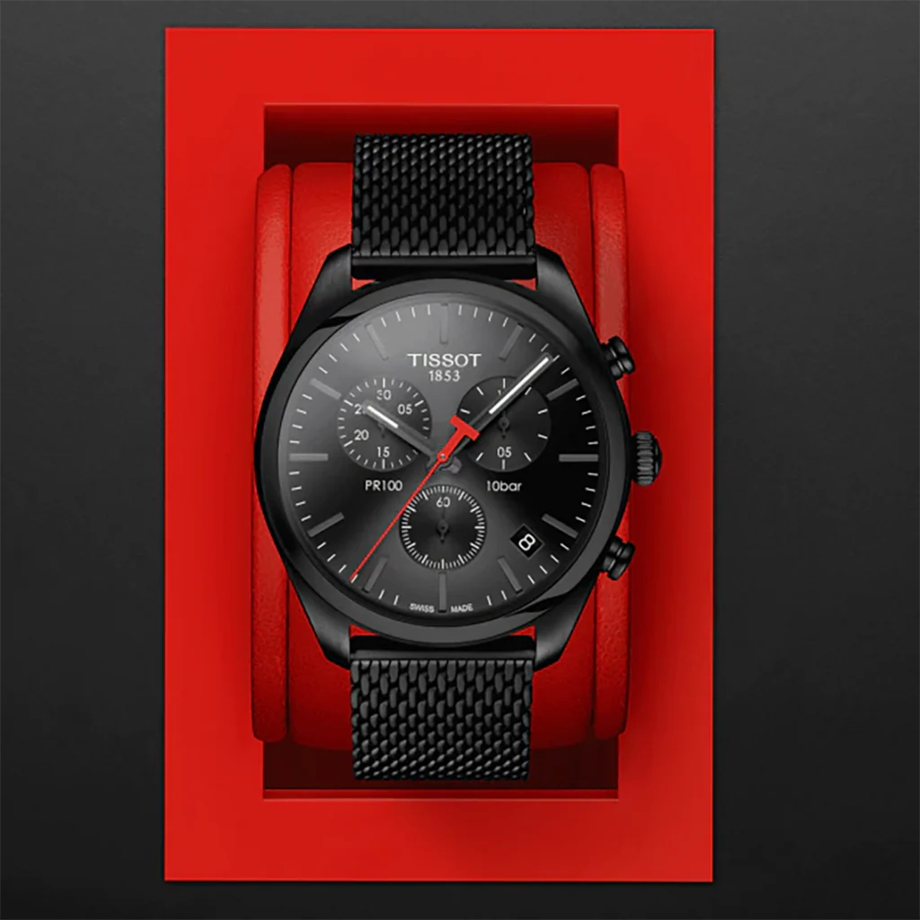 Experience refined Swiss precision with the Tissot PR 100 Chronograph T101.417.33.051.00 — a 41 mm rose-gold PVD stainless-steel chronograph featuring a deep black dial, sapphire crystal and 100 m water resistance for everyday sophistication.